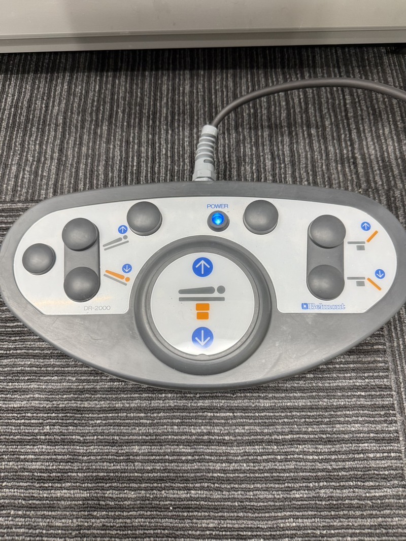 電気定格:AC100V 50/60Hz 5A 本体昇降範囲(電動油圧式):600mm~900mm 本体縦転角度(電動油圧式):頭上方20° 頭下方20° 背板屈折角度(電動油圧式):上方70° 下方15° 枕板屈折角度(手動):上方30° 下方90° テーブルトップ寸法:500×1988mm 質量:180kg
