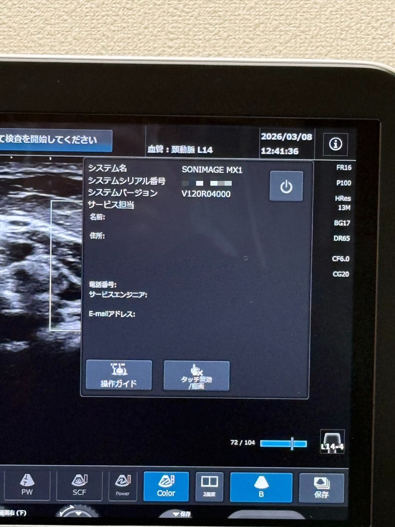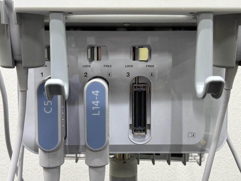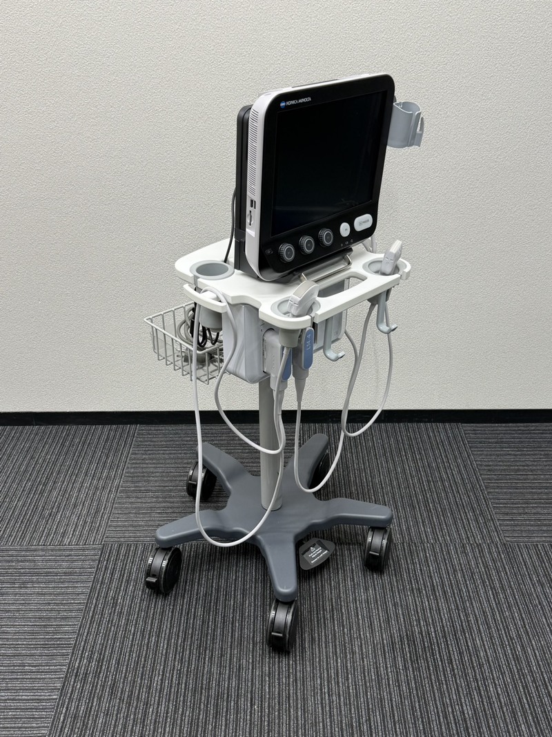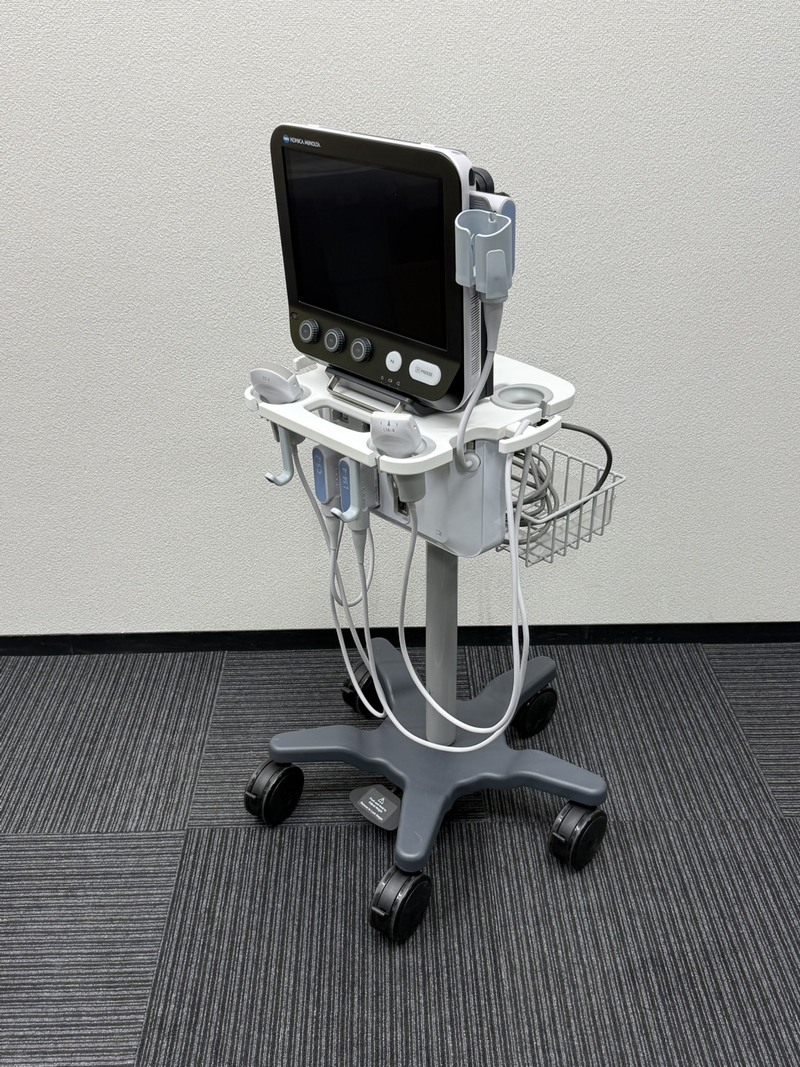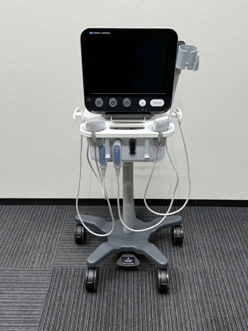 モード:B、Color、Power、SCF、PW モニター:12.1インチ 電源:AC100-240V(ACアダプター使用時)、50/60Hz、最大150VA(本体単体) サイズ:W 320 mm x H 302 mm x D 64.5 mm (突起含まず、スタンド、ハンドルを閉じた状態) 質量:約4.5kg(本体単体、バッテリー含む)