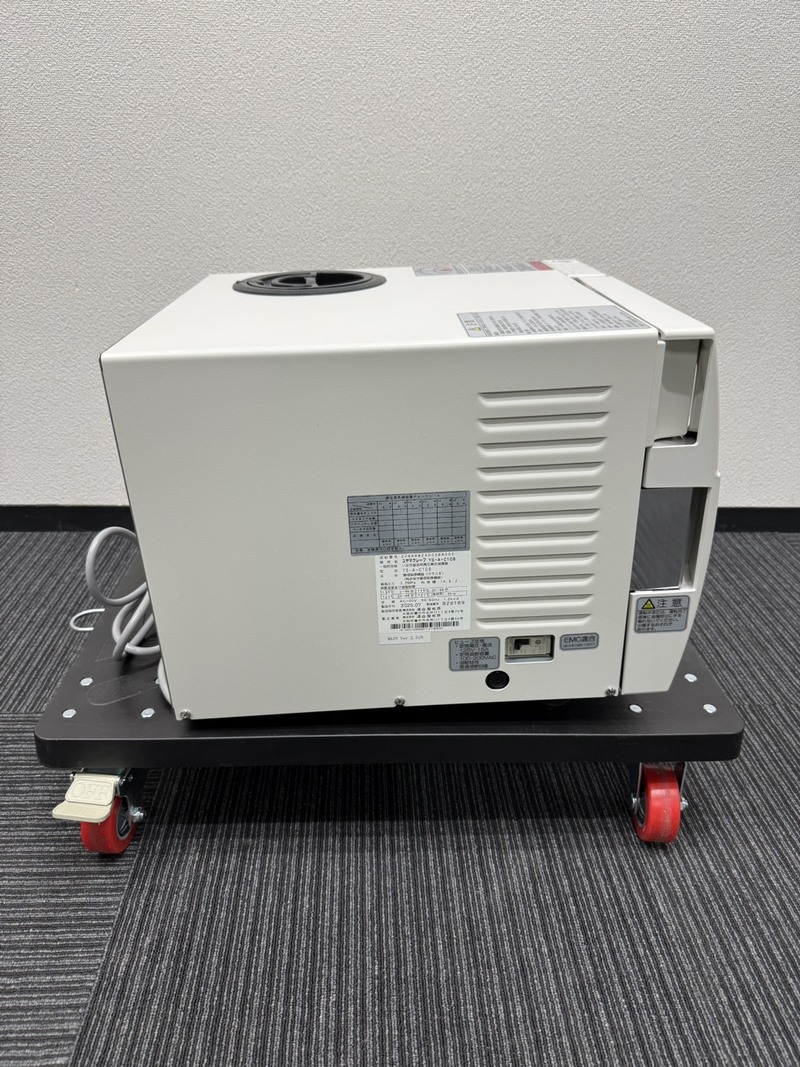 電源電圧:100V±10V 50/60Hz 消費電力:1.2kVA ± 0.1kVA 滅菌温度:135℃、121℃、115℃(115℃~136℃まで1℃単位で任意設定可能) 給水タンク容量:3.7リットル 外形寸法:幅426mm × 奥行469mm × 高さ366mm チェンバー内寸法:直径233mm × 奥行360mm(入り口直径217mm) 内容量:14.8リットル 重量:32kg