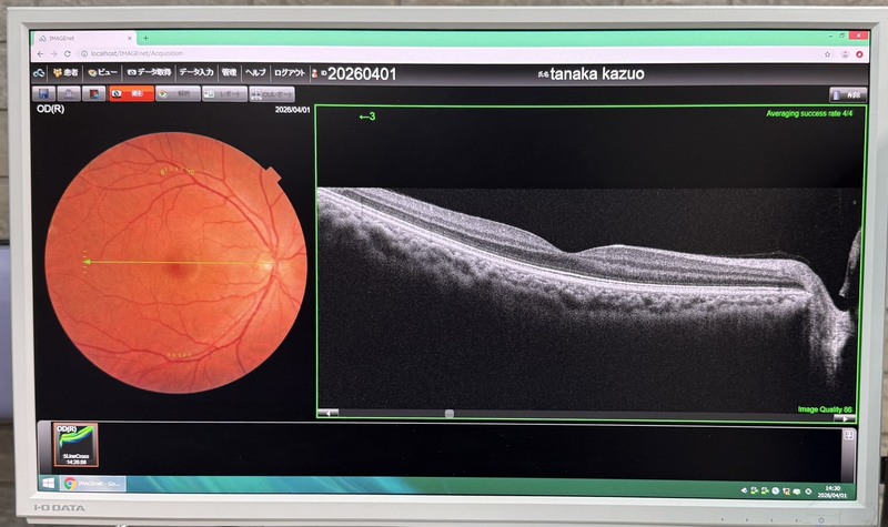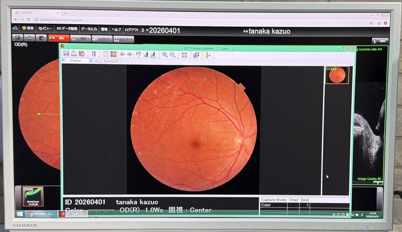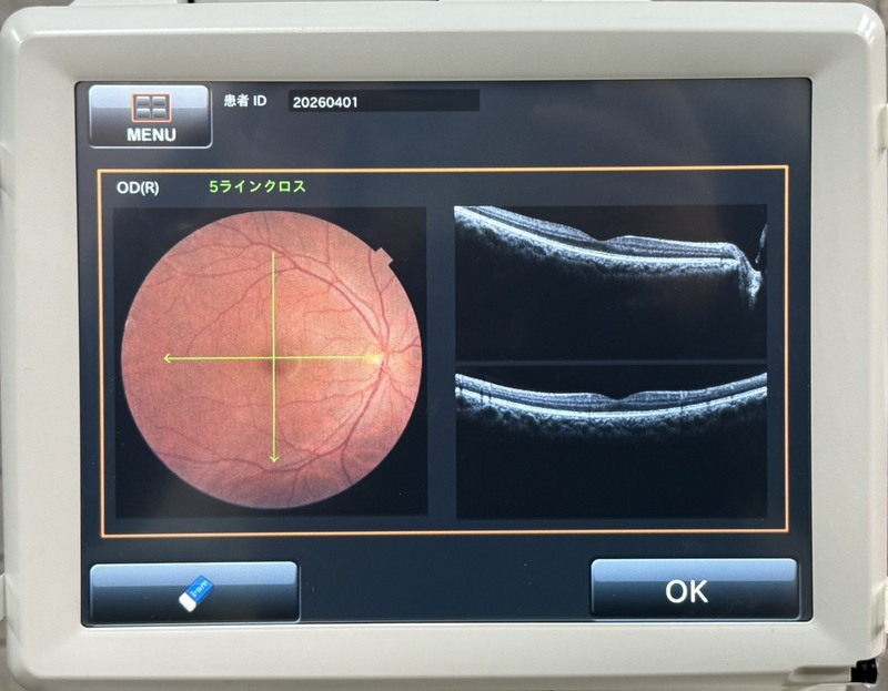OCT眼底断層画像およびカラー/レッドフリー(デジタル)眼底画像の撮影が1台で可能です。